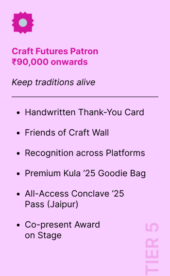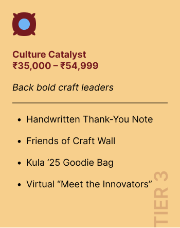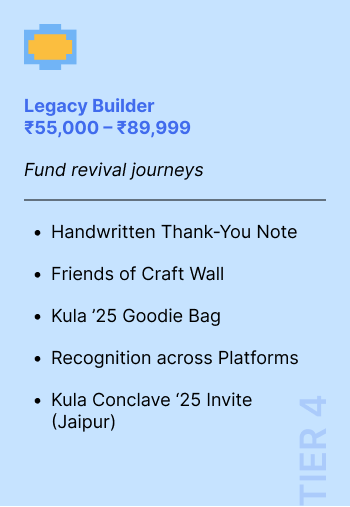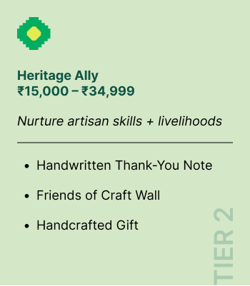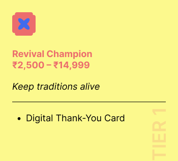 ✨ Every rupee you give goes directly to our revivalists and innovators. To make sure your chosen reward from the giving tiers reaches you smoothly, a small portion of your donation covers courier charges.
